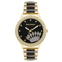 WOMEN WATCH JUICY COUTURE JC1334BKGP (38 MM). Type of mechanism: QUARTZ. Display: ANALOGICAL. Material of case: METAL. Colour of case: GOLDEN. Material of bracelet: METAL. Colour of bracelet: MULTICOLORED. Dial Colour: BLACK. Glass type: MINERAL. Clousure: FOLDING. Diameter of dial: 38 MM. Submersible: NO