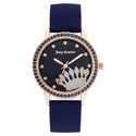 WOMEN WATCH JUICY COUTURE JC1342RGNV (38 MM). Type of mechanism: QUARTZ. Display: ANALOGICAL. Material of case: METAL. Colour of case: PINK. Material of bracelet: SILICONE. Colour of bracelet: BLUE. Dial Colour: BLUE. Glass type: MINERAL. Clousure: BUCKLE. Diameter of dial: 38 MM. Submersible: NO