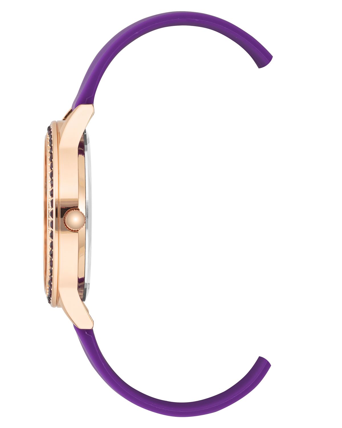 WOMEN WATCH JUICY COUTURE JC1342RGPR (38 MM). Type of mechanism: QUARTZ. Display: ANALOGICAL. Material of case: METAL. Colour of case: PINK. Material of bracelet: SILICONE. Colour of bracelet: LILAC. Dial Colour: LILAC. Glass type: MINERAL. Clousure: BUCKLE. Diameter of dial: 38 MM. Submersible: NO