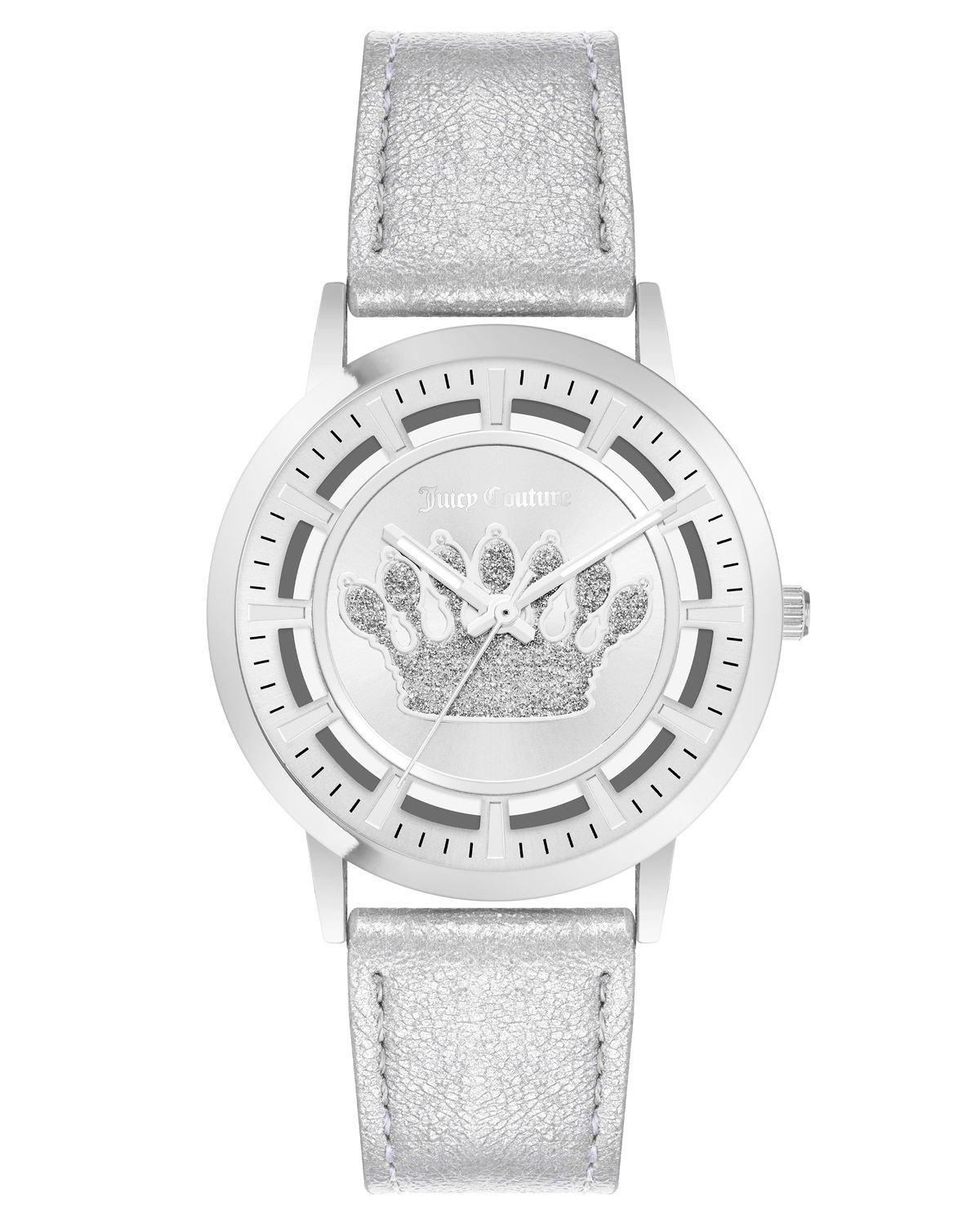 WOMEN WATCH JUICY COUTURE JC1345SVSI (36 MM). Type of mechanism: QUARTZ. Display: ANALOGICAL. Material of case: METAL. Colour of case: SILVER. Material of bracelet: POLIPRIEL. Colour of bracelet: SILVER. Dial Colour: SILVER. Glass type: MINERAL. Clousure: BUCKLE. Diameter of dial: 36 MM. Submersible: NO