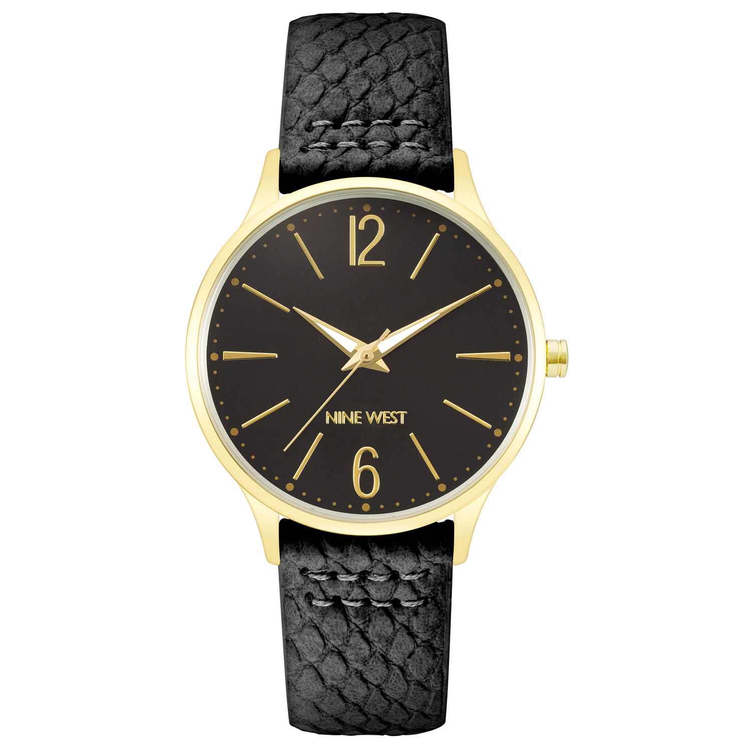 WOMEN WATCH NINE WEST NW-2560BKBK (40MM). Type of mechanism: QUARTZ. Display: ANALOGICAL. Material of case: METAL. Colour of case: BLACK. Material of bracelet: LEATHER. Colour of bracelet: BLACK. Dial Colour: BLACK. Glass type: MINERAL. Clousure: BUCKLE. Diameter of dial: 40MM. Submersible: NO