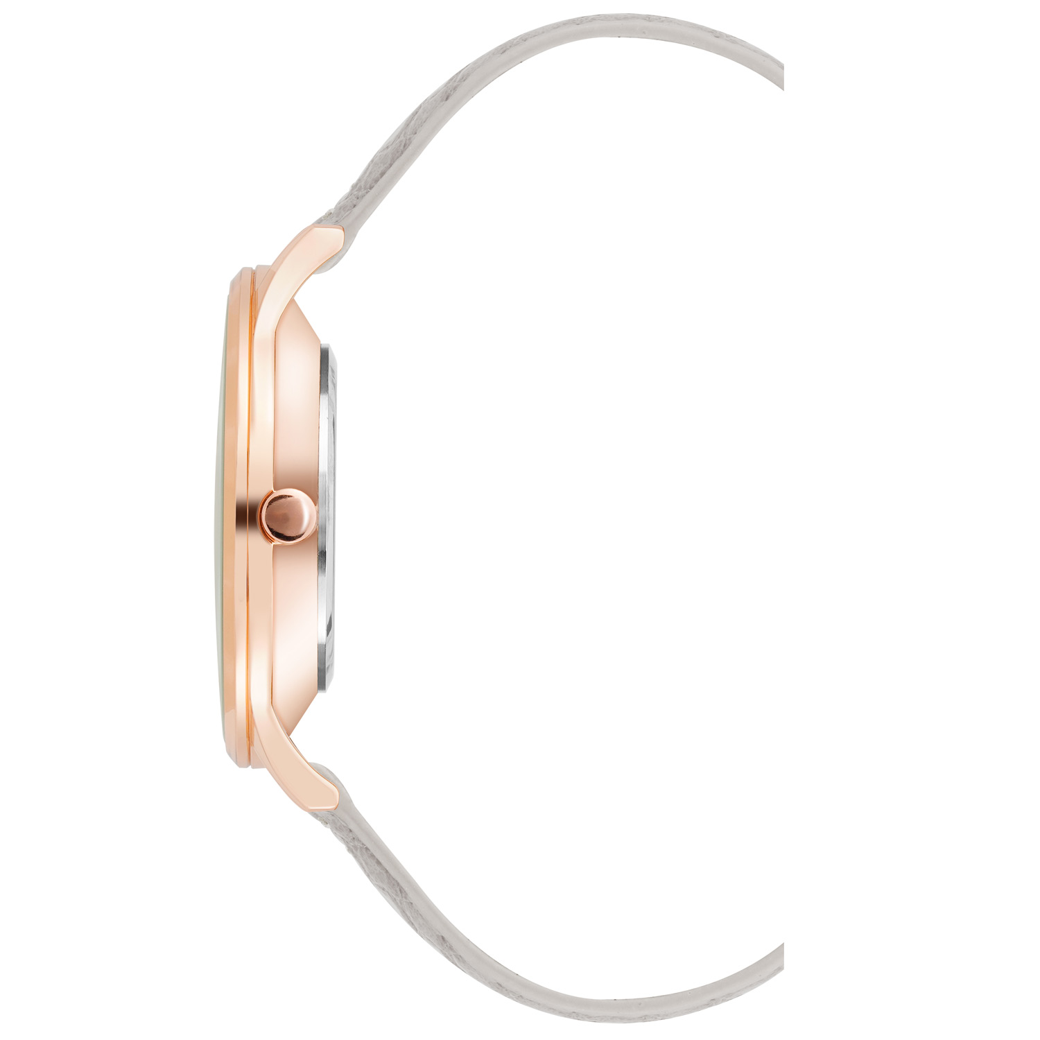 WOMEN WATCH NINE WEST NW-2560RGGY (38MM). Type of mechanism: QUARTZ. Display: ANALOGICAL. Material of case: METAL. Colour of case: PINK. Material of bracelet: LEATHER. Colour of bracelet: GREY. Dial Colour: GREY. Glass type: MINERAL. Clousure: BUCKLE. Diameter of dial: 38MM. Submersible: NO