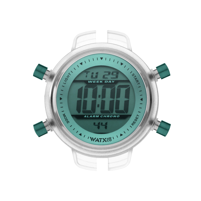 WOMEN WATCH WATXANDCO RWA1548 (38 MM). Type of mechanism: QUARTZ. Display: DIGITAL. Material of case: POLYCARBONATE. Colour of case: TRANSPARENT. Material of bracelet: . Colour of bracelet: . Dial Colour: . Glass type: . Clousure: . Diameter of dial: 38 MM. Submersible: 5 ATM