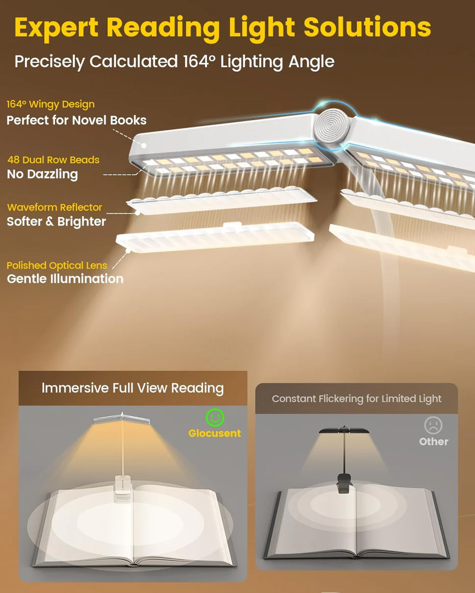 Αυτός ο φακός διαβάσματος της GLOCUSENT αποτελεί την τέλεια λύση για όσους αγαπούν το διάβασμα, είτε στο σπίτι, είτε στα ταξίδια.