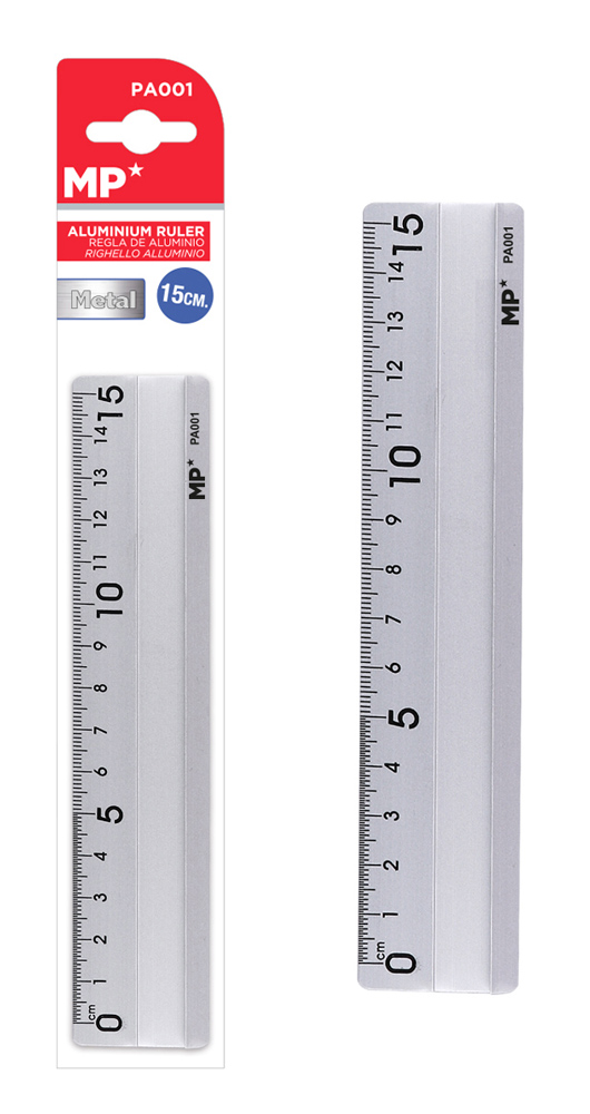 MP μεταλλικός χάρακας PA001, 15cm, ασημίΜεταλλικός χάρακας αλουμινίου της MP, ιδανικός για ακριβείς μετρήσεις και σχεδίαση. Διαθέτει συμπαγή και ελαφριά κατασκευή για εύκολη χρήση στο σχολείο, το γραφείο ή το σπίτι.Χαρακτηριστικά-κλίμακα: 15cm-υλικό: αλουμίνιο-χρώμα: ασημί
