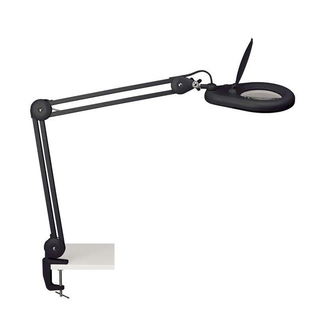 Ο ρυθμιζόμενος ανθεκτικός μεταλλικός βραχίονας και ο ενσωματωμένος διακόπτης διευκολύνουν τη λειτουργία. Ο μεγεθυντικός φακός προσφέρει μια εντυπωσιακή μεγέθυνση 1.75 φορές, κάνοντάς τον ιδανικό για λεπτομερείς εργασίες. Η βάση στήριξης διευκολύνει την εύκολη προσάρτηση σε τραπέζια.