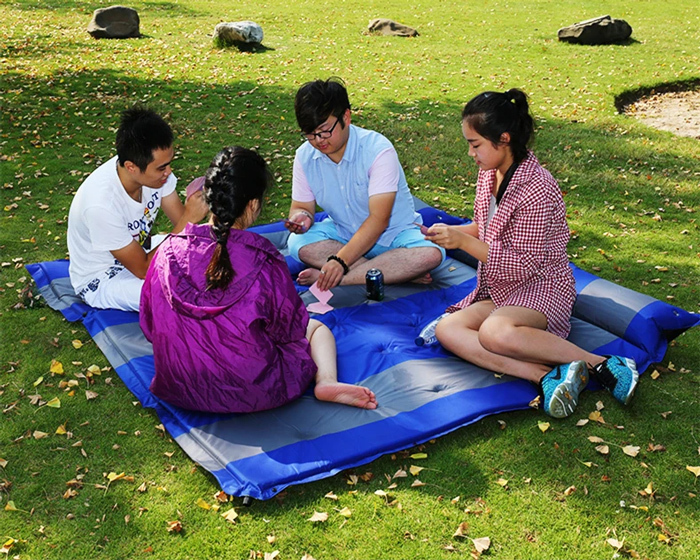 HOME USE αυτοφούσκωτο στρώμα διπλό με μαξιλάρι 192x132x3cm μπλε γκρι
