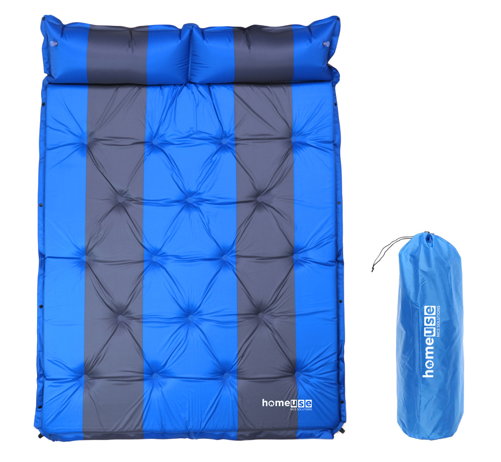 HOME USE αυτοφούσκωτο στρώμα HUH-0238 με μαξιλάρι, διπλό, 192x132x3cm, μπλε/γκρι