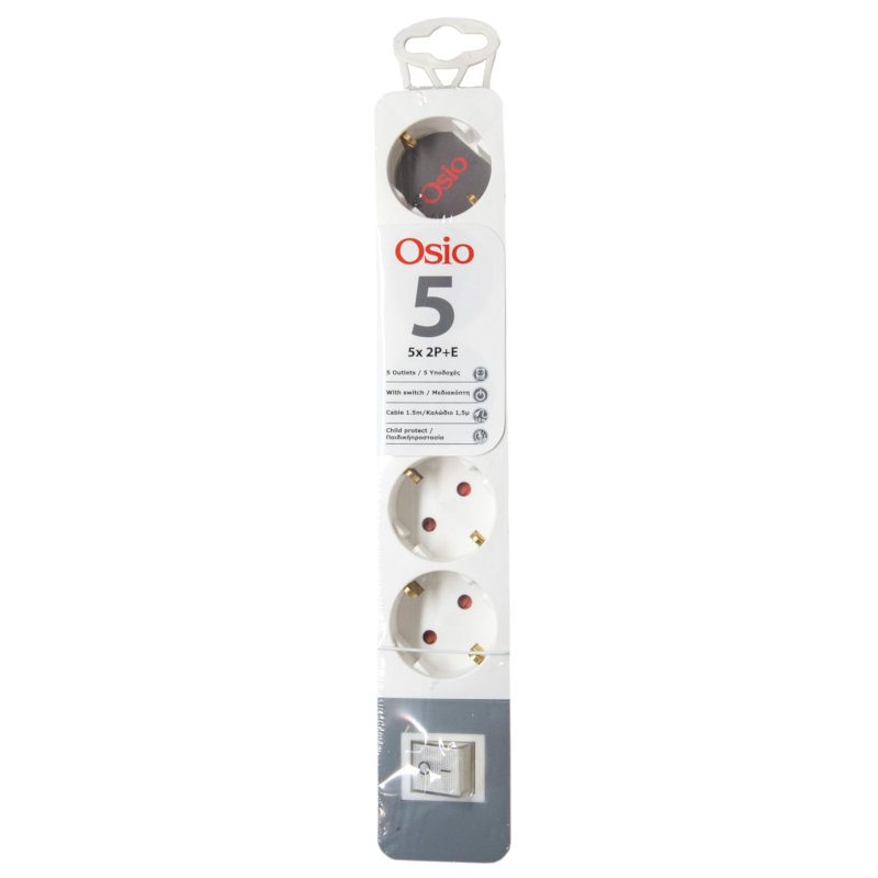 Πολύπριζο Με Διακόπτη Osio OPS-2005 Πολύπριζο 5 θέσεων με παιδική προστασία, και καλώδιο 1.5 m