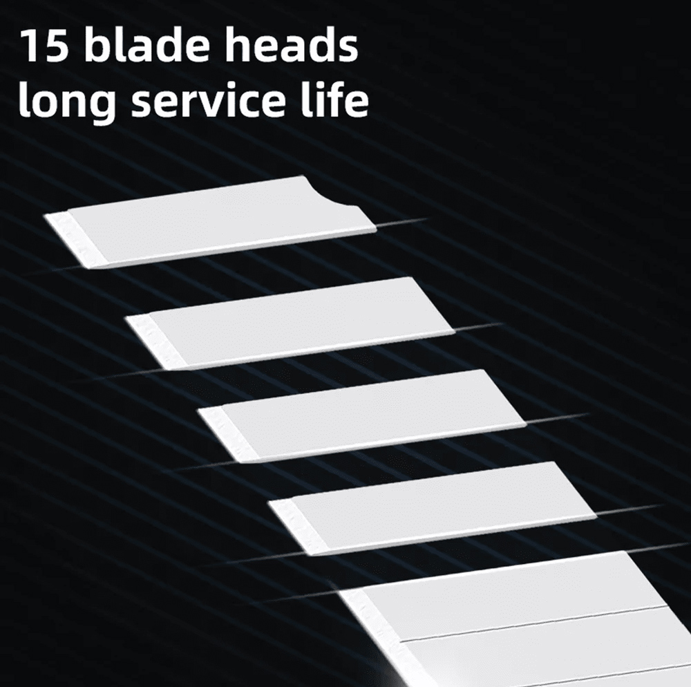 Η κάθε λεπίδα χωρίζεται σε 15 μέρη, ώστε, αφαιρώντας το φθαρμένο άκρο, να έχετε νέα λεπίδα ξανά.