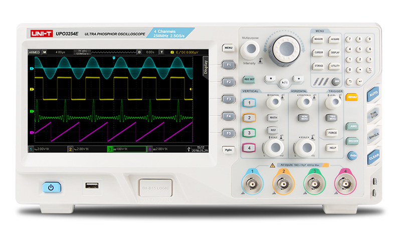 Υψηλής απόδοσης ψηφιακός παλμογράφος πάγκου Uni-T, 4 αναλογικών καναλιών με εύρος συχνότητας 150MHz.