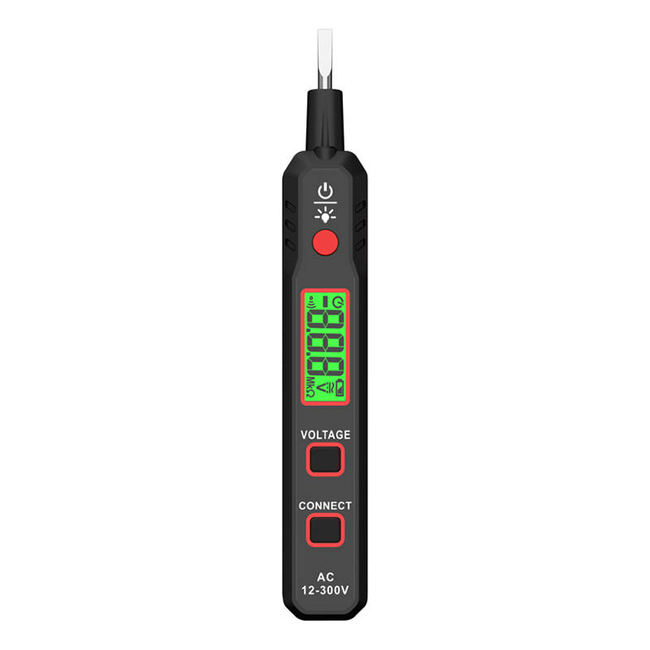The Habotest HT89 non-contact voltage and diode tester guarantees high precision, with a voltage measurement range of AC 12-300 V. What's more, the product detects break points and intelligently detects active and inactive cables - the type of cable will be indicated by a change in the intensity of the beep and the color of the backlight.