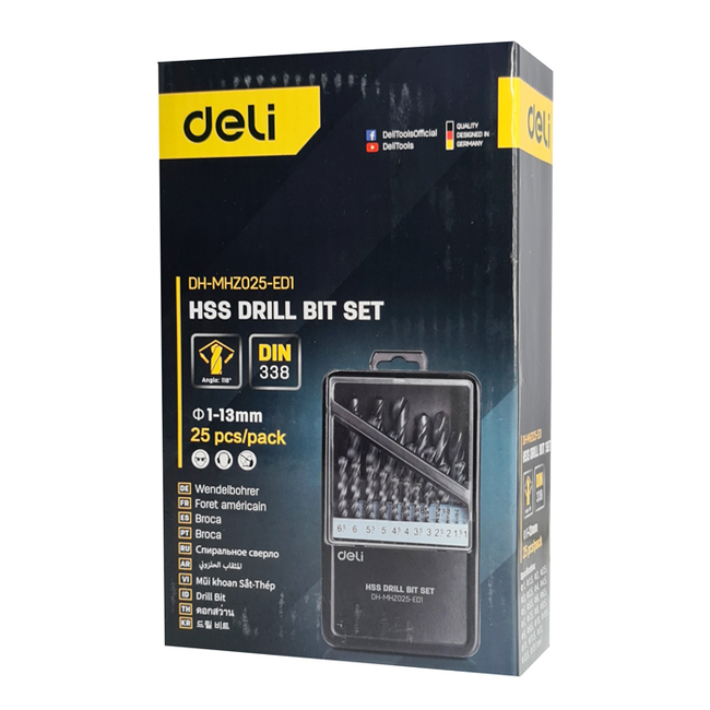 DELI σετ τρυπάνια DH-MHZ025-ED1 για σίδηρο HSS, 1-13mm, DIN 338, 25τμχ