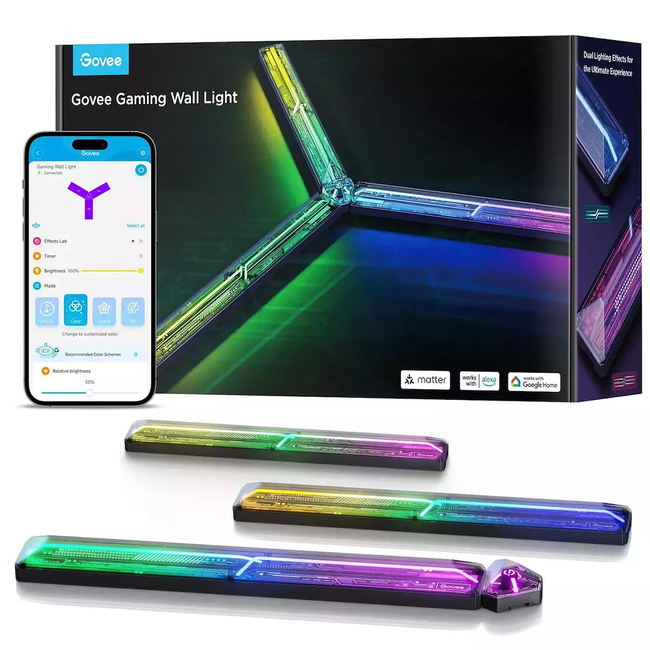 Το Govee Gaming Wall Light είναι μια κομψή και μοντέρνα φωτιστική λύση σχεδιασμένη ειδικά για gaming rooms και χώρους ψυχαγωγίας. Με τους διαχυτές φωτός υψηλής διαφάνειας και τα περίπλοκα μοτίβα κυκλωμάτων, δημιουργεί μια φουτουριστική αισθητική που μπορεί να αναβαθμίσει οποιοδήποτε περιβάλλον.