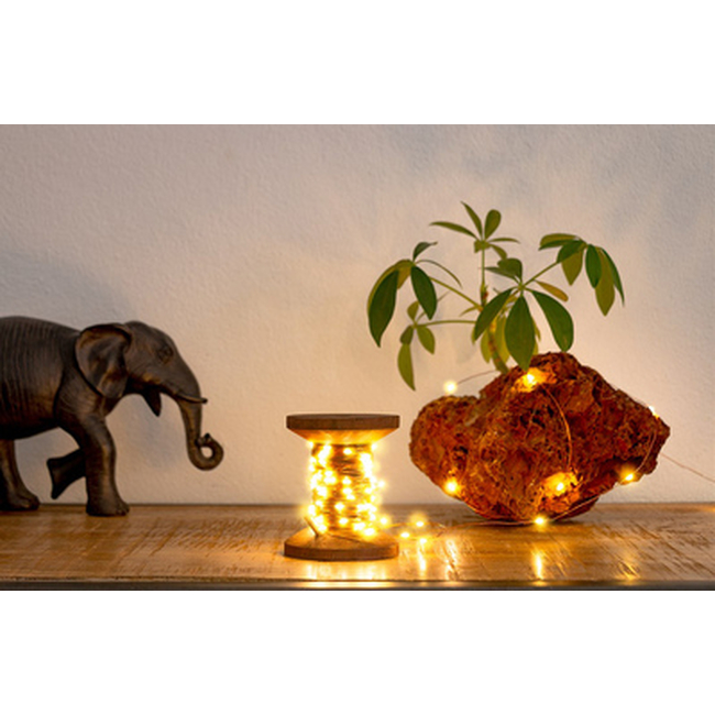 LED φωτιστικό σε σχήμα καρούλι νήματος, κατασκευασμένο με herbal raw υλικά, με όψη ξύλου, ιδανικό για την διακόσμηση του χώρου σας. Αποτελείται από 100 micro LEDs με θερμοκρασία χρώματος 2700K, που δημιουργούν ένα εντυπωσιακό εφέ και μπορούν να χρησιμοποιηθούν και ανεξάρτητα από την βάση.