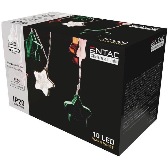 Χριστουγεννιάτικα Εσωτερικά Πολύχρωμα Αστέρια Entac 60mm 10 LED Θερμό 1,65m