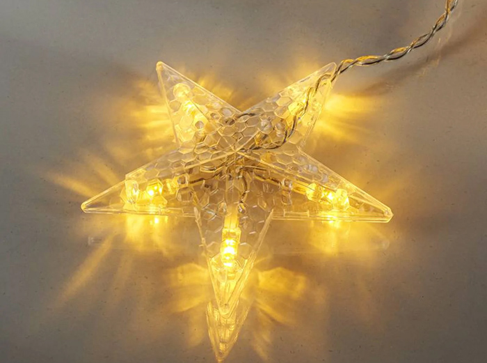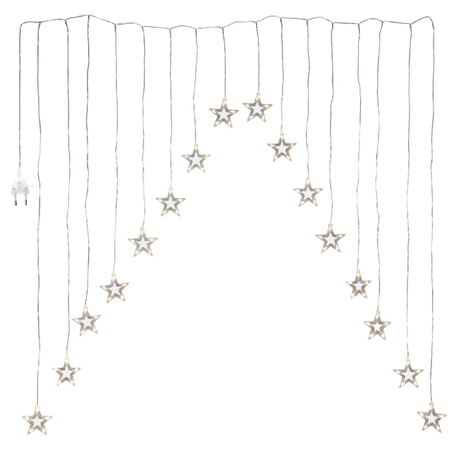 Λαμπάκια LED τύπου κουρτίνα με διακοσμητικά αστέρια, ιδανικά για την χριστουγεννιάτικη διακόσμηση σε οποιονδήποτε εσωτερικό χώρο.