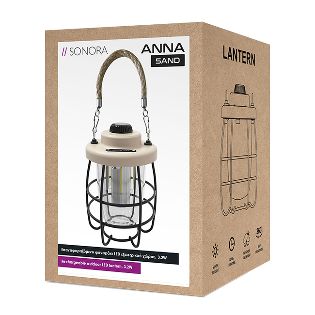 Το Επαναφορτιζόμενο Φαναράκι LED Sonora εξωτερικού χώρου, 3.2W είναι μια πολυλειτουργική και ανθεκτική λύση φωτισμού σχεδιασμένη ειδικά για εξωτερικούς χώρους.