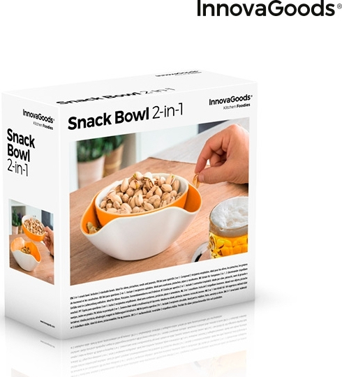 Το InnovaGoods Μπολ για Ορεκτικά 2 σε 1 είναι ένα πρακτικό και πρωτότυπο σετ 2 τεμαχίων, ιδανικό για το σερβίρισμα ορεκτικών όπως ελιές, πατατάκια, φυστίκια και άλλα σνακ, καθώς και για τη συλλογή των περισσευμάτων, όπως κουκούτσια και κόκαλα. Κατασκευάζεται από PC χωρίς BPA, προσφέροντας ελαφρύ, φορητό και εύχρηστο σχεδιασμό. Ο καινοτόμος και λειτουργικός του σχεδιασμός περιλαμβάνει διαφορετικά σχήματα και μεγέθη, με ευπροσάρμοστη και προσαρμόσιμη τοποθέτηση για διάφορες χρήσεις και χώρους. Είναι εύκολο στη χρήση και στον καθαρισμό και βοηθά στην ταξινόμηση και εξοικονόμηση χώρου. Οι διαστάσεις του είναι περίπου ?16 x 4,5 cm και 20 x 8 x 20 cm. Η συσκευασία διατίθεται σε 24 γλώσσες.