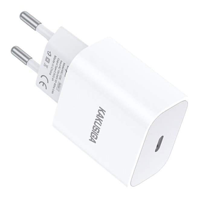 Υψηλής απόδοσης φορτιστής τοίχου της KAKUSIGA, κατασκευασμένος από ανθεκτικό υλικό και συμβατός με συσκευές που φορτίζουν μέσω θύρας USB-C.