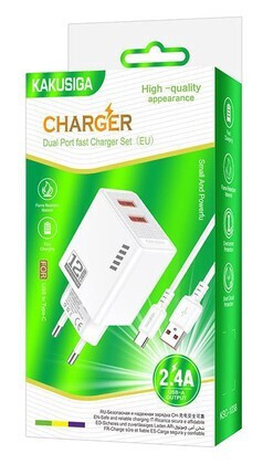 Υψηλής απόδοσης φορτιστής τοίχου της KAKUSIGA, κατασκευασμένος από ανθεκτικό υλικό και συμβατός με συσκευές που φορτίζουν μέσω θύρας USB.