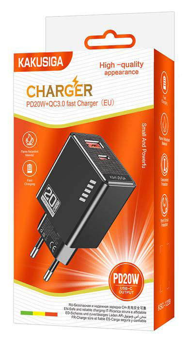 KAKUSIGA φορτιστής τοίχου KSC-1239, USB & USB-C, 20W, μαύρος