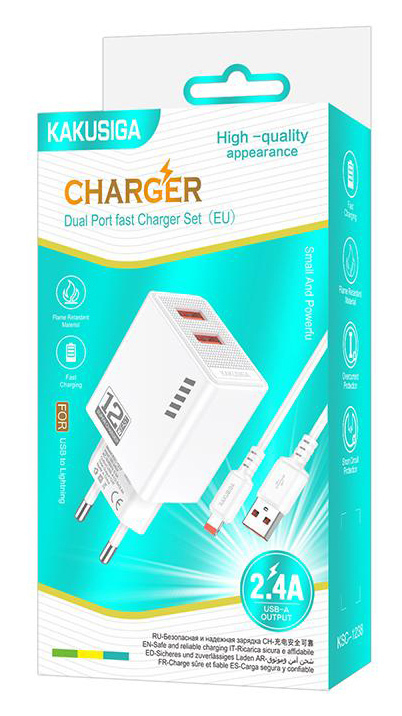 KAKUSIGA φορτιστής τοίχου KSC-1238 με καλώδιο Lightning, 2x USB, 12W, λευκός