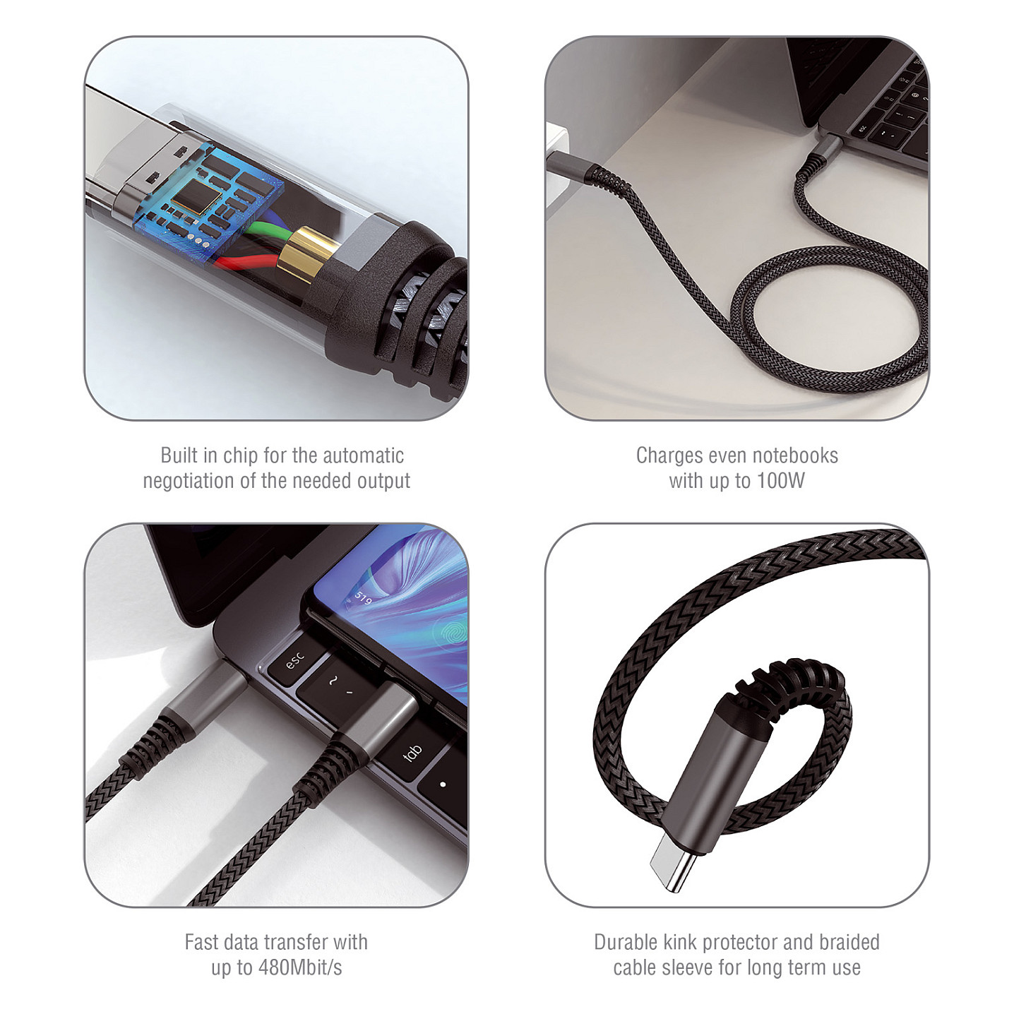 Καλώδιο Κινητού 4Smarts USB-C to USB-C PremiumCord 100W 1.5m. Black