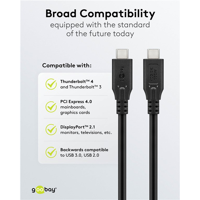 Καλώδιο USB-C της Goobay με εξαιρετικά γρήγορους ρυθμούς μεταφοράς δεδομένων έως 40Gbps και υψηλή απόδοση φόρτισης έως 100W.