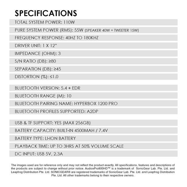 Karaoke Sonic Gear Rgb Hda Speaker 110W Hyperbox 1200 Pro Black