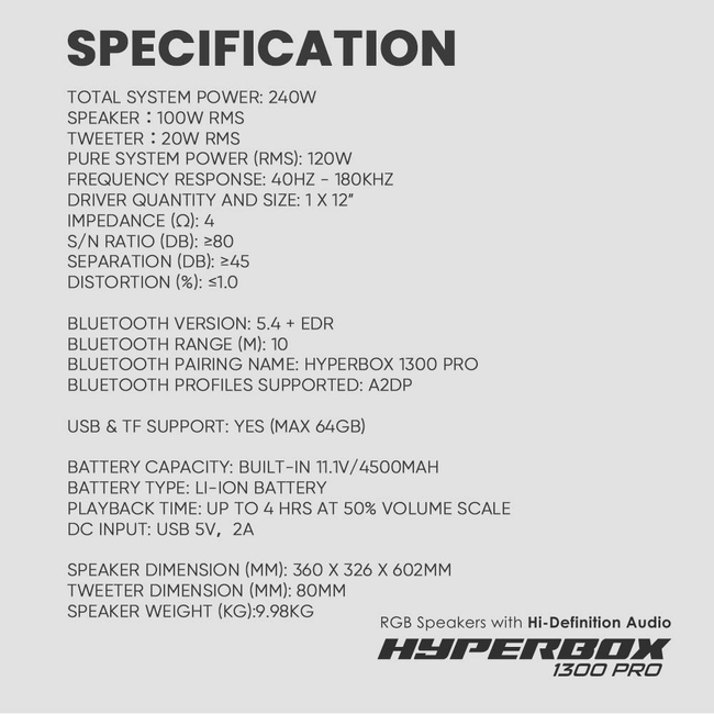 Karaoke Sonic Gear Rgb Hda Speaker 240W Hyperbox 1300 Pro Black