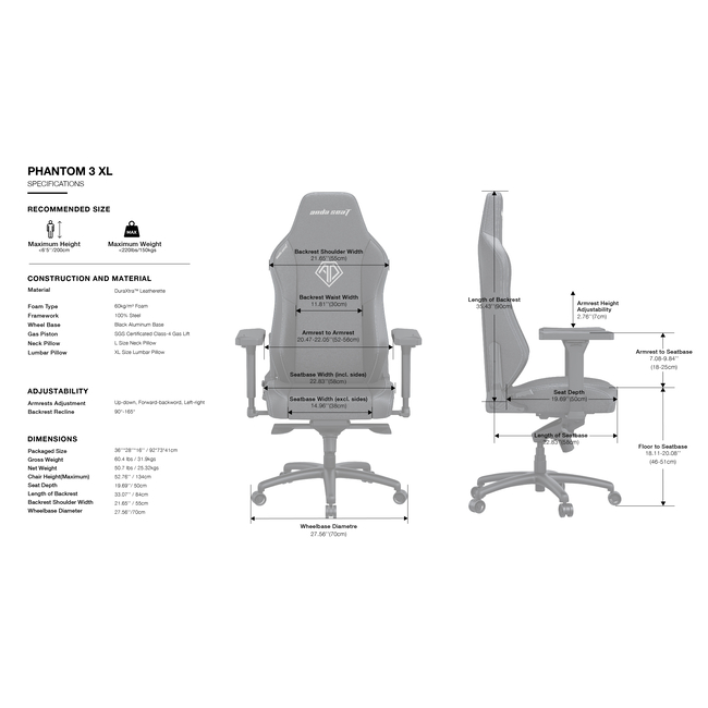 Καρέκλα Gaming Anda Seat Phantom 3 Xl Black