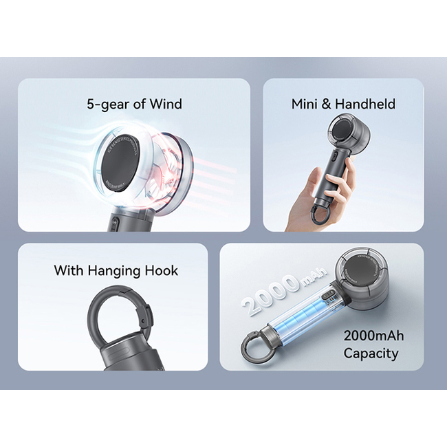 Μίνι φορητός ανεμιστήρας της Usams με 5 επίπεδα ταχύτητας του αέρα, που σας επιτρέπουν την προσαρμογή της ροής της ταχύτητας του αέρα ανάλογα με τις ανάγκες σας