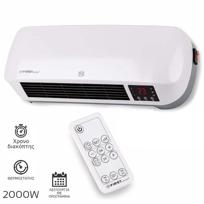 Αερόθερμο First Austria Fa-5571-3 Κεραμικό Τοίχου Με Θερμοστάτη, Χρονοδιακόπτη Και Τηλεχειριστήριο 2000 W