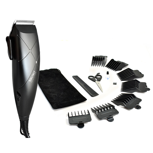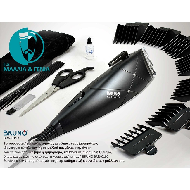 BRUNO BRN-0197 Σετ Κουρευτική Μηχανή Ρεύματος με εξαρτήματα και τσαντάκι, μαύρη