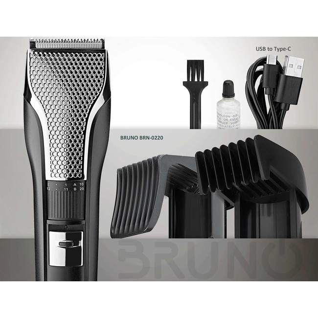 BRUNO BRN-0220 Κουρευτική μηχανή επαναφορτιζόμενη, μαύρη