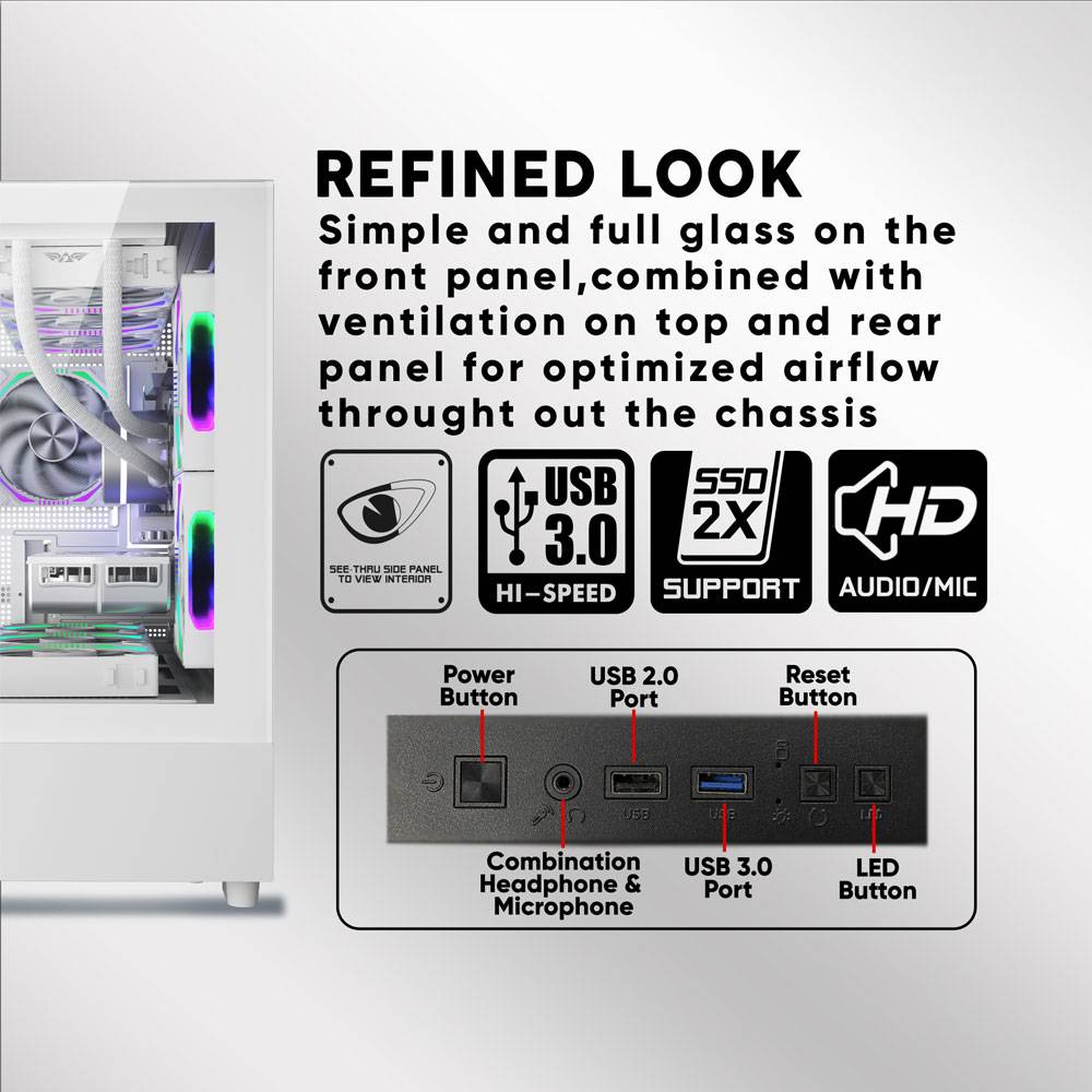 Κουτί Η/Υ Armaggeddon Rgb M-Atx Dual Chamber Gaming Aquaron Duplex Pro White