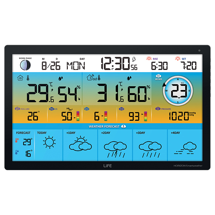 LiFE HORIZON Smartweather TUYA XL TUYA Smart Wi-Fi μετεωρολογικός σταθμός με ασύρματο εξωτερικό αισθητήρα, έγχρωμη οθόνη LCD 15.5" και πρόγνωση καιρού 5 ημερών