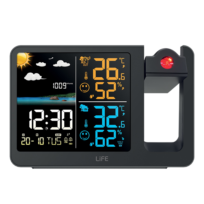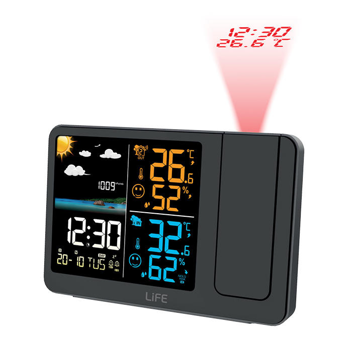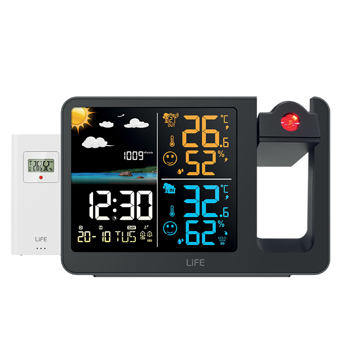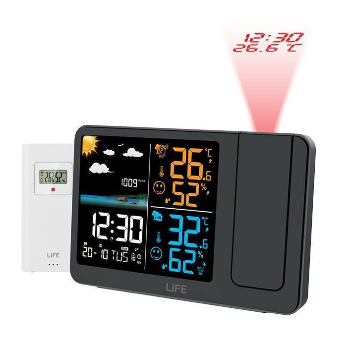 LiFE Μετεωρολογικός σταθμός με ρολόι ξυπνητήρι projector ώρας και θερμοκρασίας και ασύρματο εξωτερικό αισθητήρα