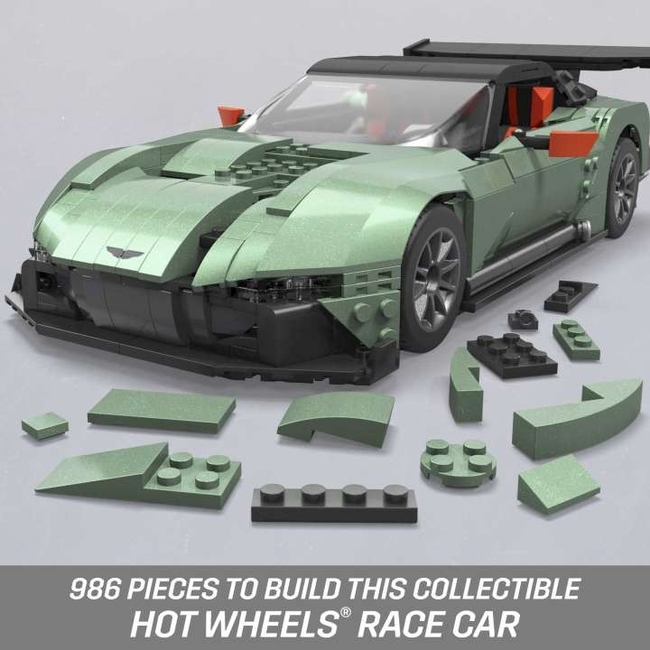 - 986-piece large scale 1:18 Aston Martin Vulcan Hot Wheels building toy for fans and collectors