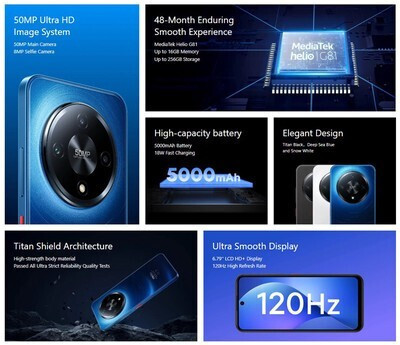 Μοντέρνο και όμορφο smartphone Mblu 22 Pro της MEIZU με μεγάλη οθόνη 6.79", οκταπύρηνο επεξεργαστή και λειτουργικό Android 15.
