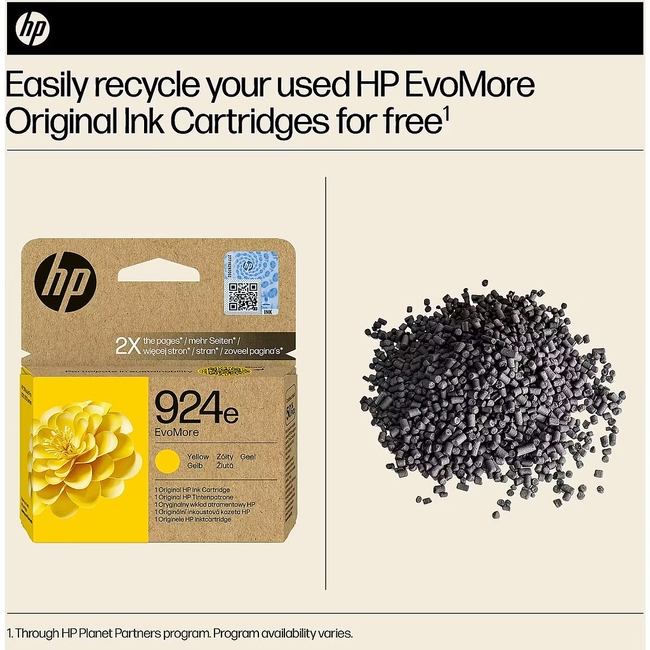 Η HP 924E EvoMore Yellow Original Ink Cartridge είναι μια κασέτα μελανιού μεγάλης χωρητικότητας σχεδιασμένη ειδικά για συμβατούς εκτυπωτές HP ink-jet, διασφαλίζοντας απαράμιλλη αποτελεσματικότητα και βιωσιμότητα.