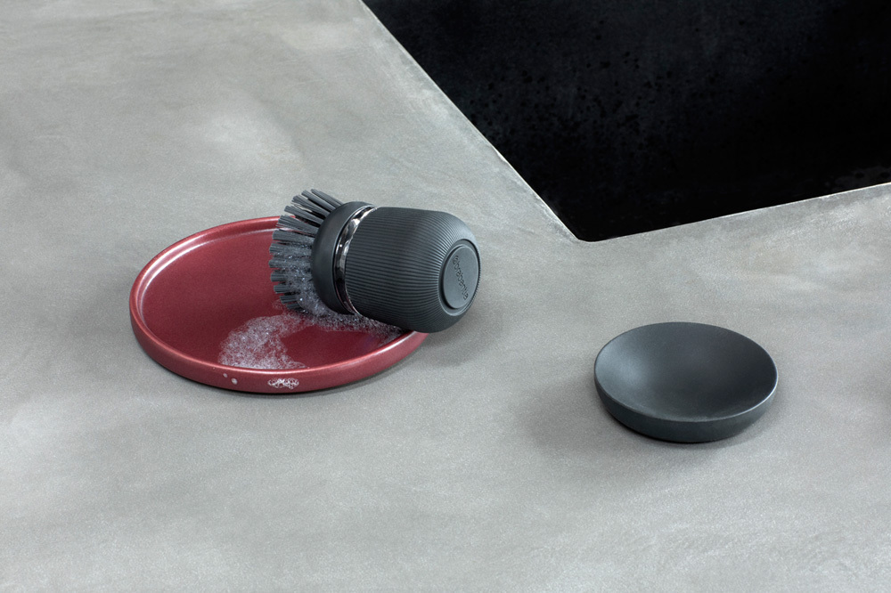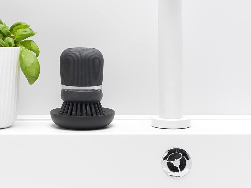 FeaturesIntegrated soap dispenser; push-button dispensing; ergonomic grip; drip tray; easy refill; replaceable brush heads