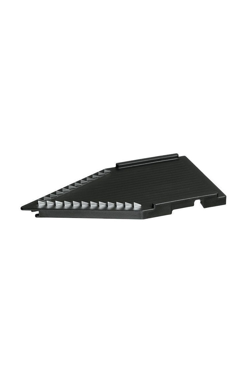 Insert Types1 smooth insert for slices; 1 coarse serrated insert for thick strips; 1 fine serrated insert for thin strips