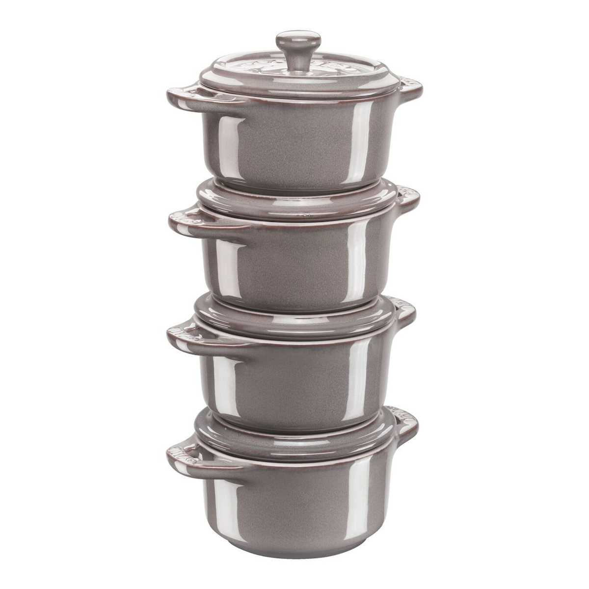 Πυρίμαχα σκεύη & γάστρες Staub σετ 4 mini cocotte στρογγυλά, κεραμικά, Antique Gray, 200 ml, με καπάκι