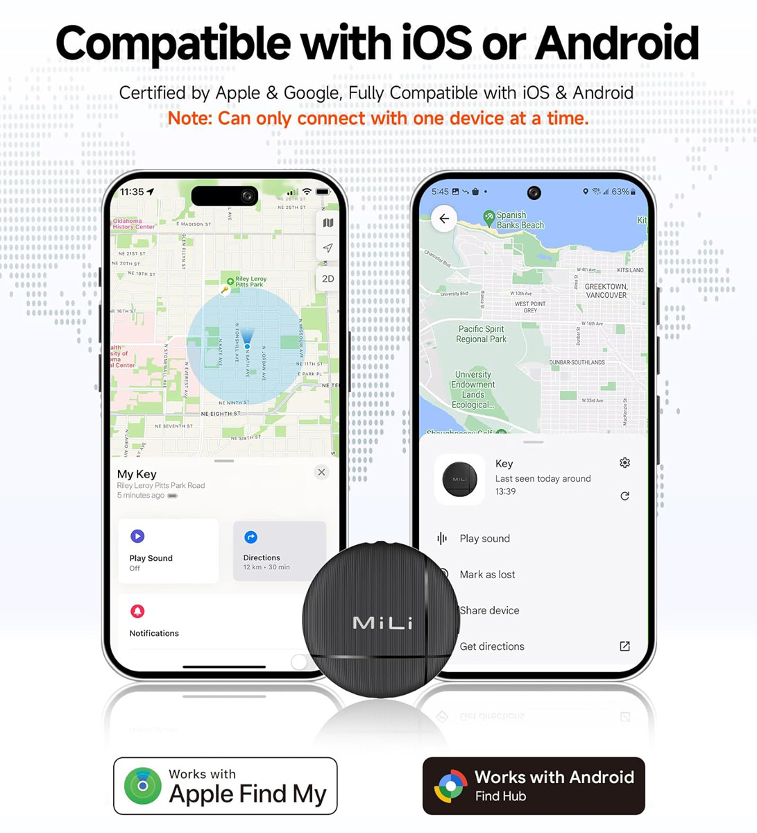 Είναι συμβατό με iOS και Android συσκευές και λειτουργεί με την εφαρμογή Apple Find My και Google Find My Device.