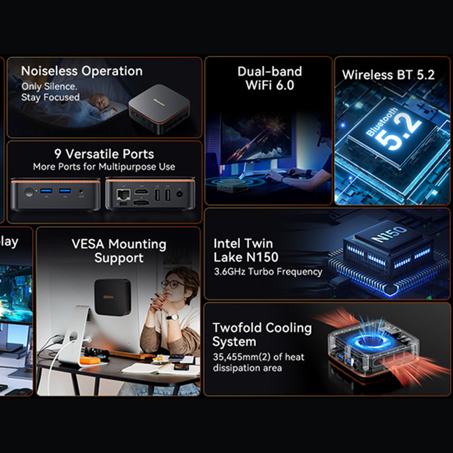Mini PC Blackview Intel N150 16gb Ddr4 512gb M.2 Ssd 2280 4k Dual Display Win 11 Pro Black