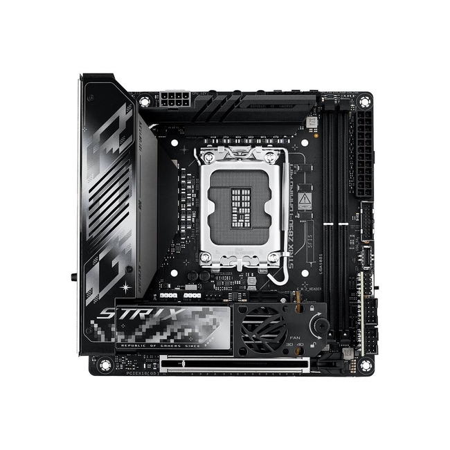 Η ASUS ROG Strix Z890-I GAMING WIFI είναι μια υψηλής απόδοσης, συμπαγής μητρική πλακέτα gaming σχεδιασμένη ειδικά για επεξεργαστές Intel LGA 1851. Ο συγκλονιστικός σχεδιασμός της διαθέτει μαύρη PCB και μεταλλικά heatsinks, προσφέροντας μια τολμηρή εμφάνιση.