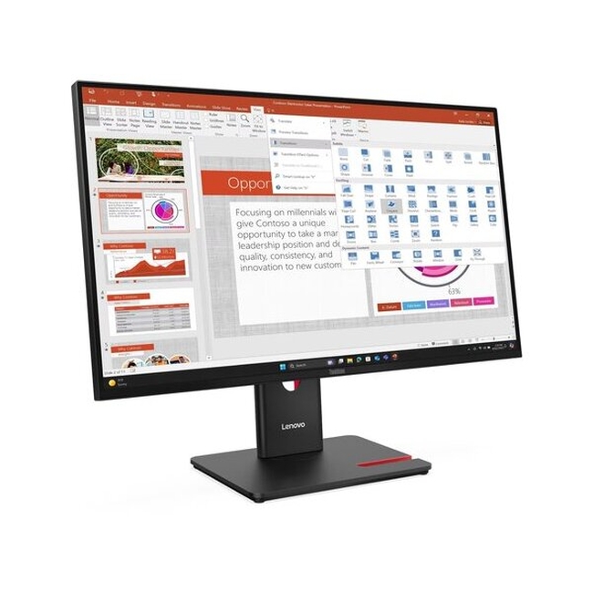 Το Lenovo ThinkVision T27-40 είναι μία εντυπωσιακή οθόνη 27 ιντσών Full HD που αξιοποιεί το σχεδιασμό πάνελ In-Plane Switching. Αυτό διασφαλίζει εκπληκτική ποιότητα εικόνας με ευρείες γωνίες θέασης 178° οριζόντια και κατακόρυφα. Η οθόνη διαθέτει ένα κομψό πολύ λεπτό πλαίσιο στις 4 πλευρές για μια καθηλωτική εμπειρία θέασης.