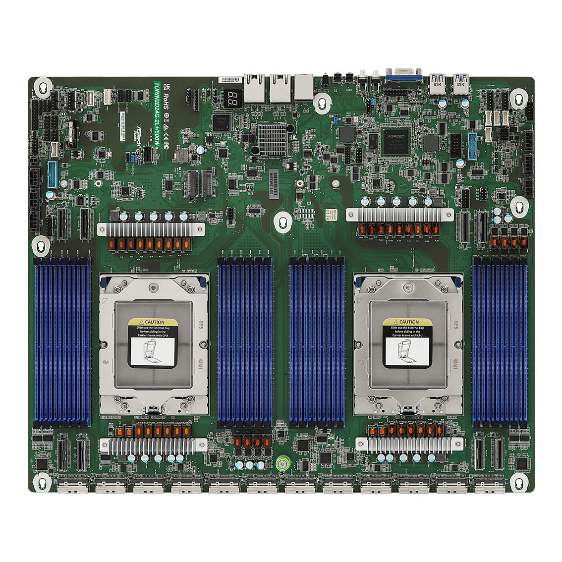 Η ASRock Rack TURIN2D24G-2L+/500W είναι μια προηγμένη μητρική πλακέτα server ειδικά κατασκευασμένη για εφαρμογές υψηλής πυκνότητας στις επιχειρήσεις και τα κέντρα δεδομένων. Διαθέτει διπλό Socket SP5 (LGA 6096) που έχει σχεδιαστεί για να φιλοξενεί τους επεξεργαστές AMD EPYC 9005/9004 σειράς.